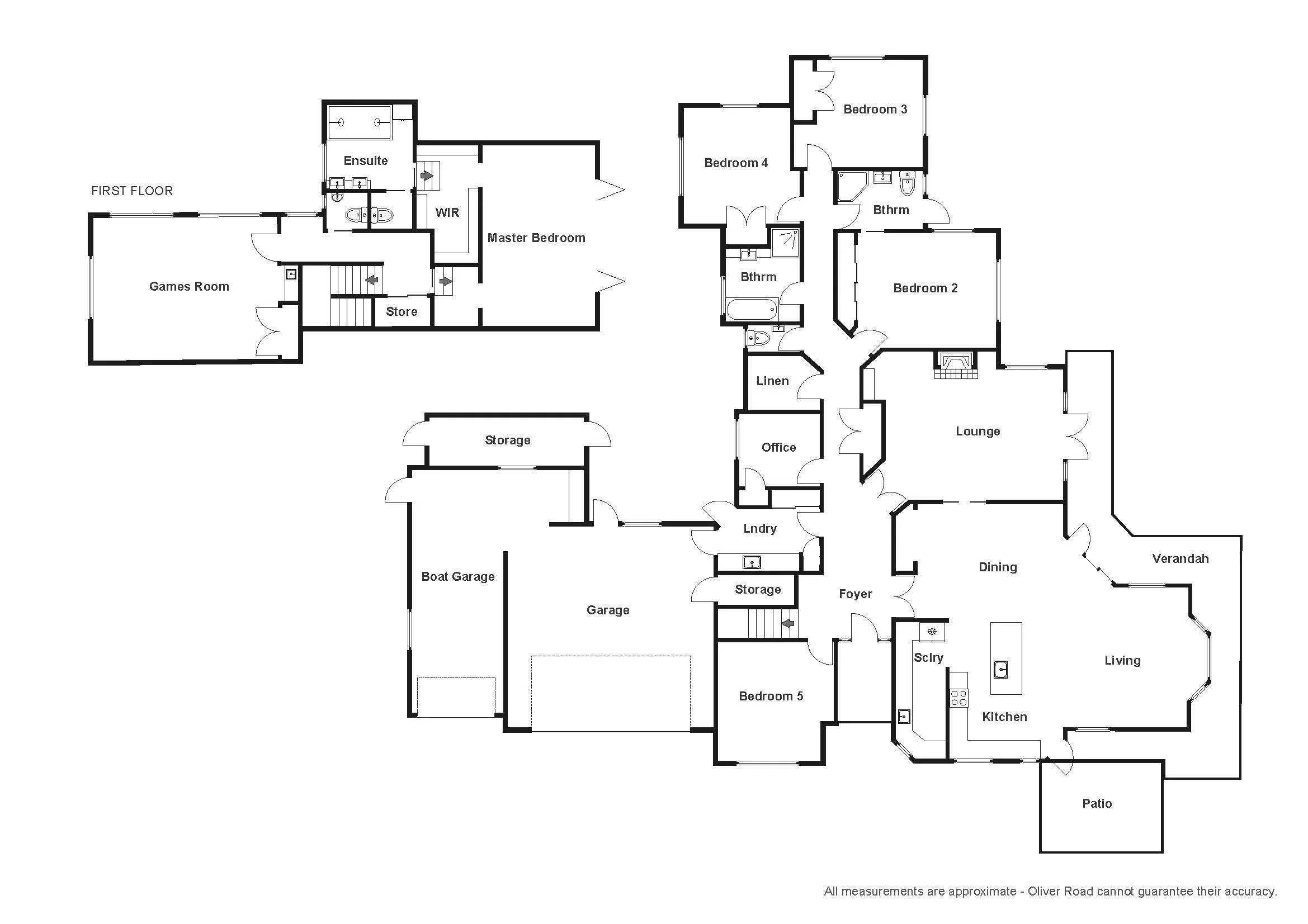Four ground floor bedrooms are generous in size, and all enjoy beautiful garden outlooks, with two having direct pool area access. The ensuite for the main ground floor bedroom cleverly connects directly with the pool area, supporting use of the pool by family and friends. A shared family bathroom, with a bath and a separate powder room, provides for other ground floor bedrooms and guests.