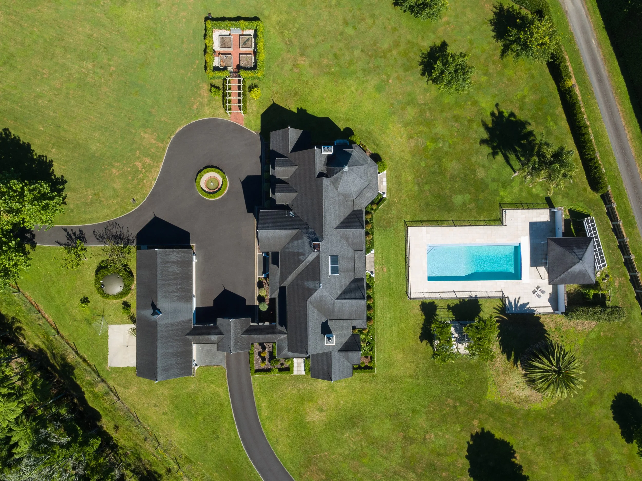 Pyes Pa is a central Bay of Plenty lifestyle location with incredible amenity and connectivity for busy professionals, families and retired couples alike. On this flat, beautifully landscaped and native bush bordered five-acre estate, sits a remarkable modern manor of scale and unmatched magnificence. Completed in 2009, with materials from five continents, the home represents over a century of craftsmanship. This property showcases what can be achieved when a focus on family, peace, and privacy meets exceptional style, quality, and a desire for permanence and authenticity. Further development opportunities beyond its current use include a wedding venue, luxury lodge, equestrian facility or botanical garden.
